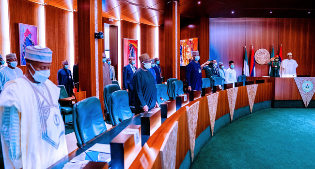 The meeting which is taking place at the Council Chambers has in attendance, Vice President Yemi Osinbajo, Secretary to the Government of the Federation (SGF) Boss Mustapha, the National Security Adviser (NSA) Major General Babagana Monguno (retd), the Chief of Staff to the President Prof Ibrahim Gambari and Heads of other security agencies.